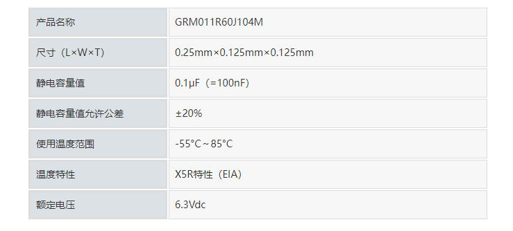 該貼片電容通過利用村田貼片電容特有的陶瓷以及電極材料微粒化和均質性化技術,與0402M尺寸的靜電容量值0.1μF的村田貼片電容比較相比,實現了貼裝面積比約為50%、體積比約為80%的小型化。與村田貼片電容廠家相同尺寸產品(0201M尺寸)相比,實現了約為10倍的大容量。