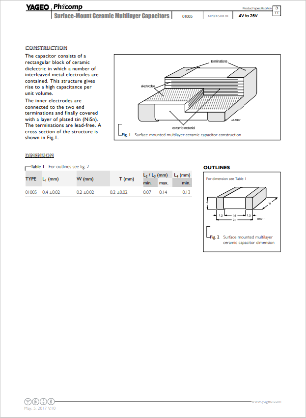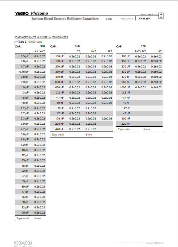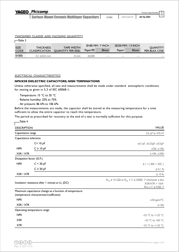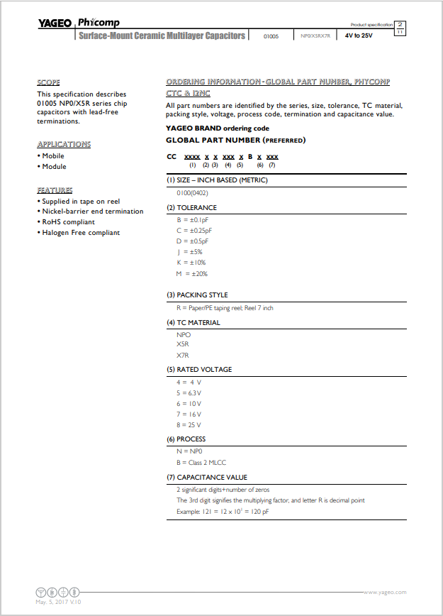 yageo(國巨)電容規(guī)格書大致預覽圖如下