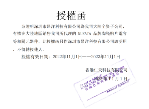 昂洋科技是以下品牌的一級代理:TDK,MURATA村田、三星SAMSUNG、國巨yageo、風華高科等知名品牌代理商。昂洋作為muRata村田原廠授權的一級代理商,是深圳村田電容的一級代理商。原廠現貨直銷:貼片電容、貼片電阻等全系列產品。