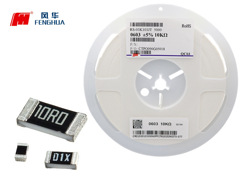 阻值識別:風華貼片電阻的阻值通常以三位數字表示,例如“103”表示阻值為10kΩ(即10000Ω)。前兩位數字表示有效數字,第三位數字表示10的冪次方。例如,“103”中的“10”表示有效數字,“3”表示10的3次方,因此阻值為10000Ω,即10kΩ。